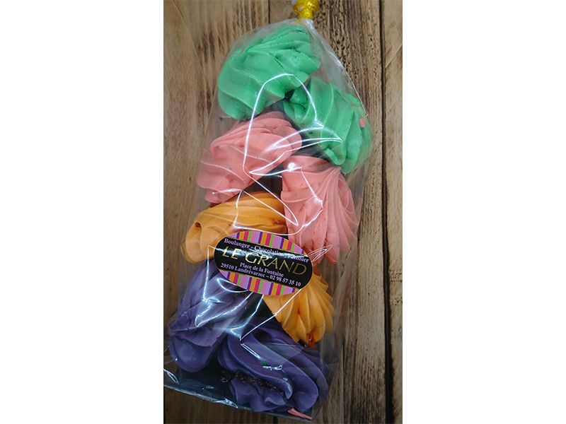 Déclinés en couleurs infinies, pour toutes les petites et grandes occasions, découvrez les saveurs fruitées et sucrées des macarons de la pâtisserie Le Grand. Nos macarons traditionnels sont entre autres à la pistache, framboise, vanille, chocolat… mais vous pouvez y déguster aussi d'autres, aux parfums étonnants tels que caramel beurre salé, Barbapapa, vanille & noix de coco et bien d’autres saveurs. La pâtisserie prépare aussi toutes sortes de meringues aux fruits pêche, citron vert, passion et cassis, ainsi que des meringues potagères kiwi, rhubarbe, melon et raisin et des meringues souvenir d'enfance barbe à papa, pomme d'amour, nougat et caramel.